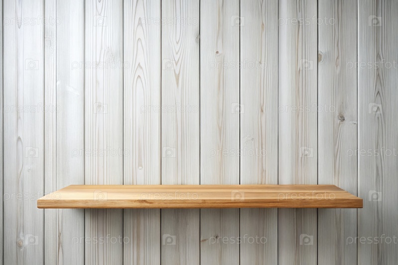 Пустая деревянная полка на белой деревянной стене для идей минималистического декора