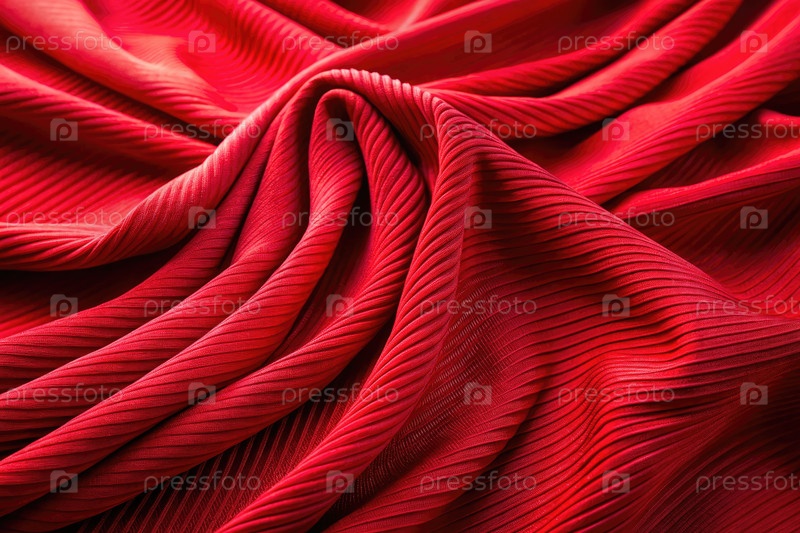 Текстильная ткань из красного плюсированного текстиля с богатыми складками и нежной драпировкой