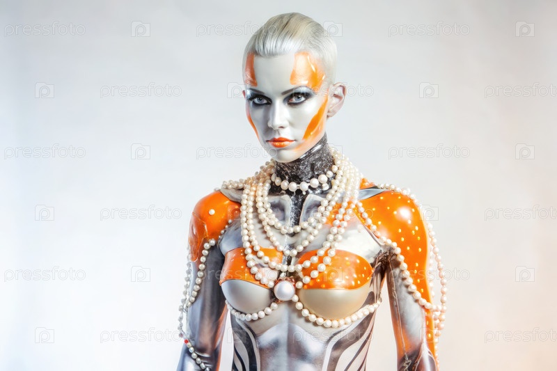 Эфирная инопланетная раса, вдохновленная киберготской модой в минималистической обстановке