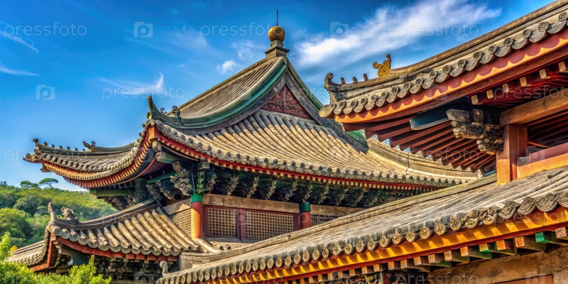 Частичные навесы древнего здания Xianguding под чистым голубым небом