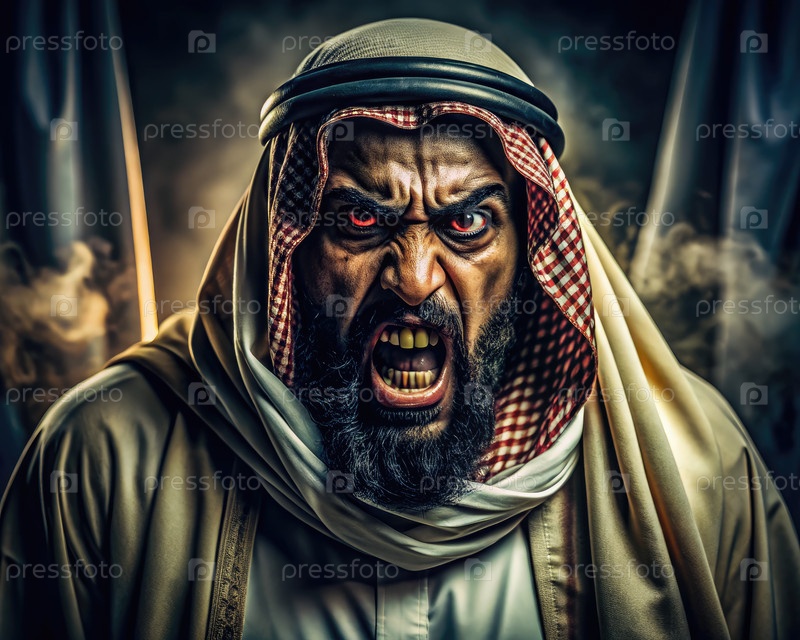 Страшная фигура в традиционной арабской одежде, воплощающая гнев
