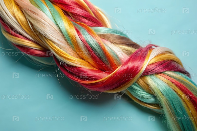 Близкий план ярких, красочных волос на бирюзовом фоне