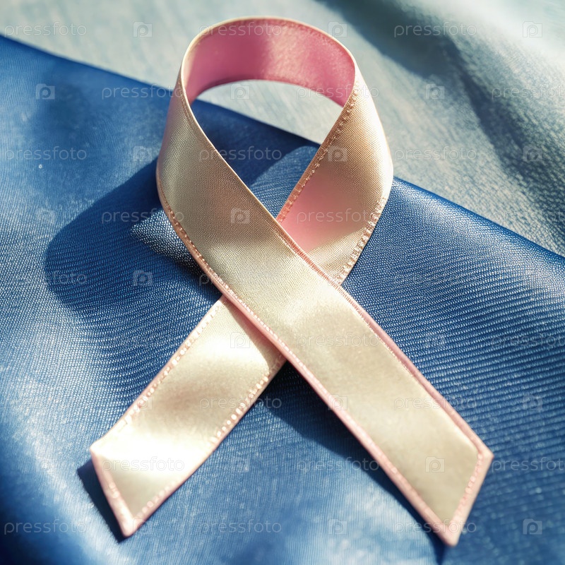 Яркая розовая лента символизирует надежду на текстурированном синем фоне ткани