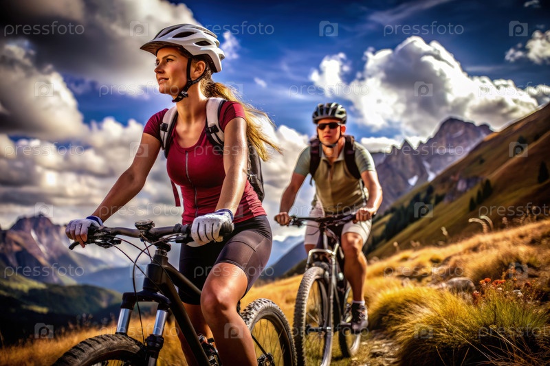 Молодая женщина катается на велосипеде по горной тропе с живописным видом в дневное время