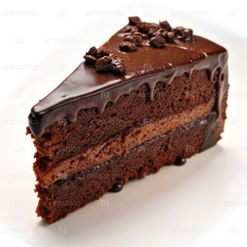 Вкусный кусок богатого шоколадного торта с глянцевой шоколадной начинкой