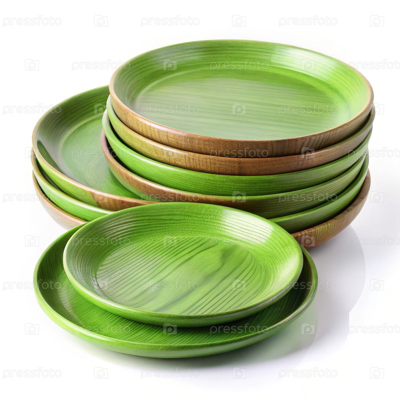 Элегантный набор писта-зеленых деревянных тарелок, демонстрирующих различные размеры для обеда