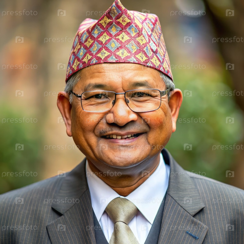 Непальский министр гордо позирует в традиционной одежде с уверенной улыбкой