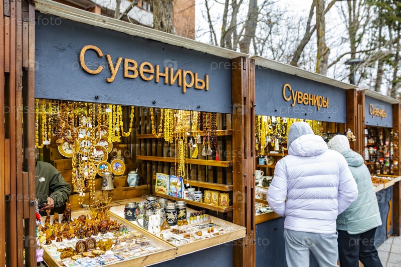Двое покупателей в сувенирной лавке с украшениями и бижутерией