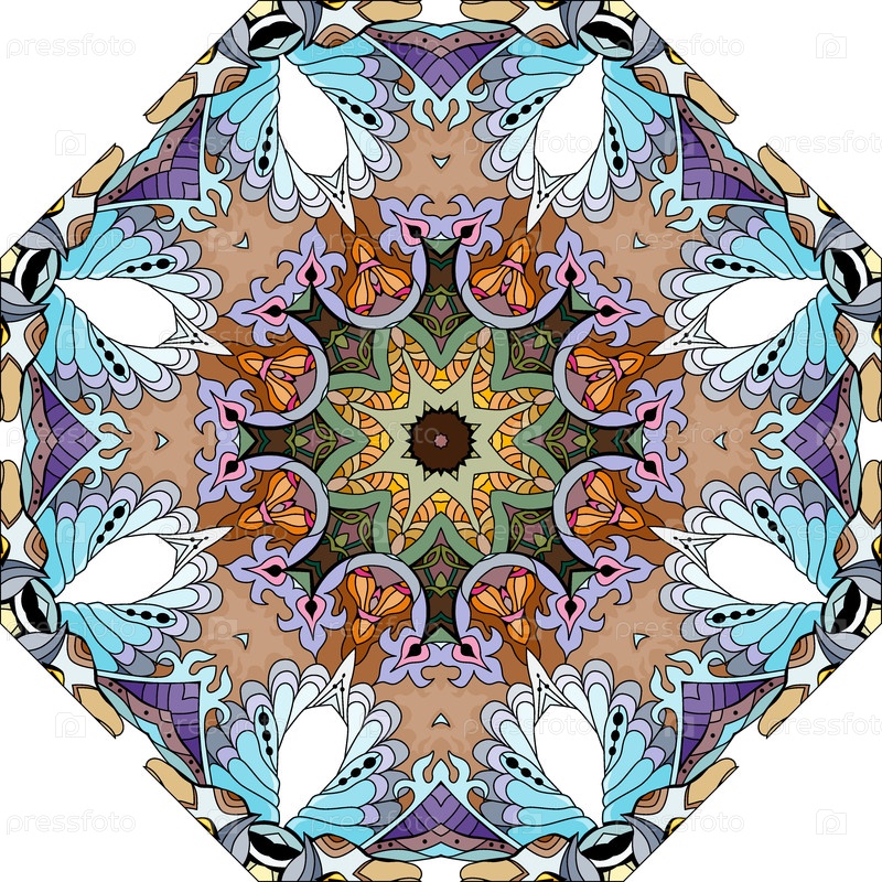 Декоративные круглые орнаменты. Необычная форма цветка. Восточный вектор, шаблоны антистрессовой терапии. Элементы дизайна ткачества. Логотипы йоги Вектор