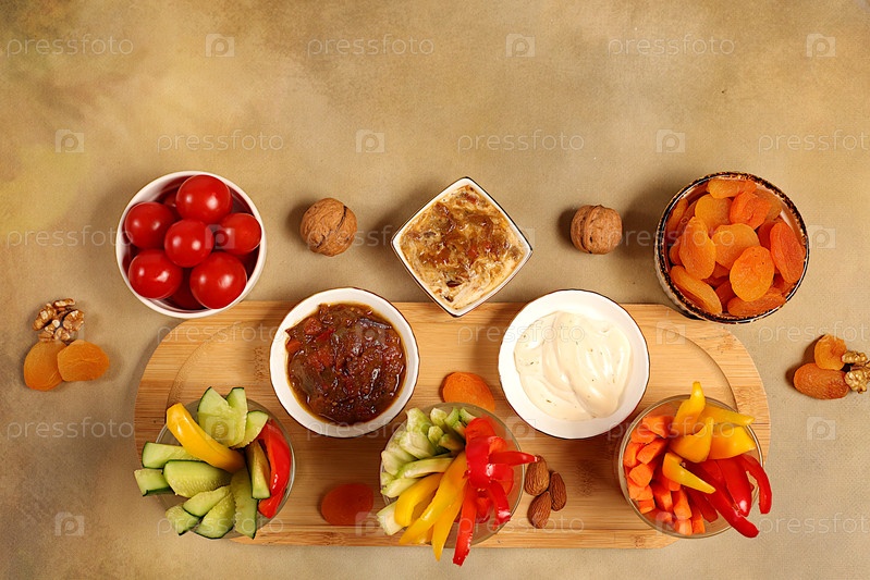 Средневосточная тарелка, Здоровая еда Кулинария фонарь с миской хумуса и сырыми овощными палочками, орехами и сушеными абрикосами