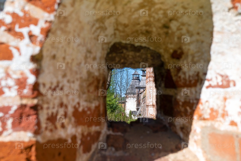 Вид через бойницу крепости. Борисоглебский мужской монастырь. Ярославская область, поселок городского типа Борисоглебский