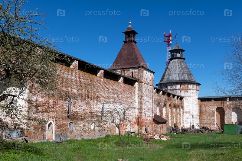Башни и стены Борисоглебского мужского монастыря. Ярославская область, поселок городского типа Борисоглебский