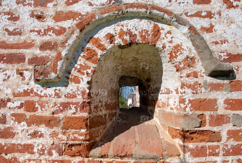 Вид через бойницу крепости. Борисоглебский мужской монастырь. Ярославская область, поселок городского типа Борисоглебский