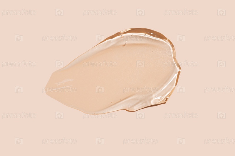 Макрообразный верхний вид одного диагонального бежевого геля. Профессиональный образец косметической текстуры для увлажняющей сыворотки, примера лица или гиалуроновой маски. Минималистский эстетический фон для роскошного брендинга красоты и презентации пр