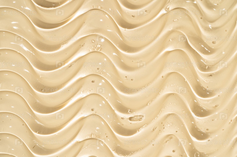 волнистая бежевая косметическая гелевая текстура. Профессиональный рипучий шаблон прозрачной гидратирующей маски или жидкой сыворотки для брендинга красоты. Минималистский эстетический фон для продуктов по уходу за кожей, оздоровлению и дерматологии презе