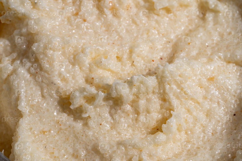 Проветривая и кремообразная белая текстура с видимыми отшелушивающимися зернами и резкими художественными тенями