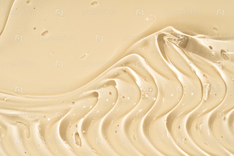Близкий снимок волнисто-бежевого косметического гелевого пятна. Профессиональный образец текстуры крепкой медной маски, антивозрастного сыворотки или светящегося геля для лица для презентации по уходу за кожей. Роскошная золотая палитра для индустрии крас