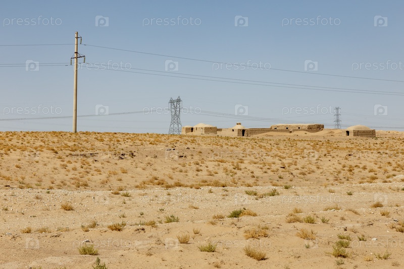 Традиционные дома из глиняных кирпичей и линии электропередач в провинции Джоузжан пустынный ландшафт Афганистан
