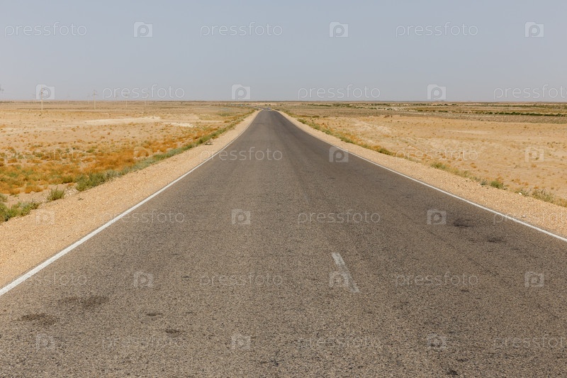 Перспективный вид длинной прямой асфальтированной дороги от Шебергана до Андхоя через сухую засушливую пустыню в районе Джоузжан Афганистана