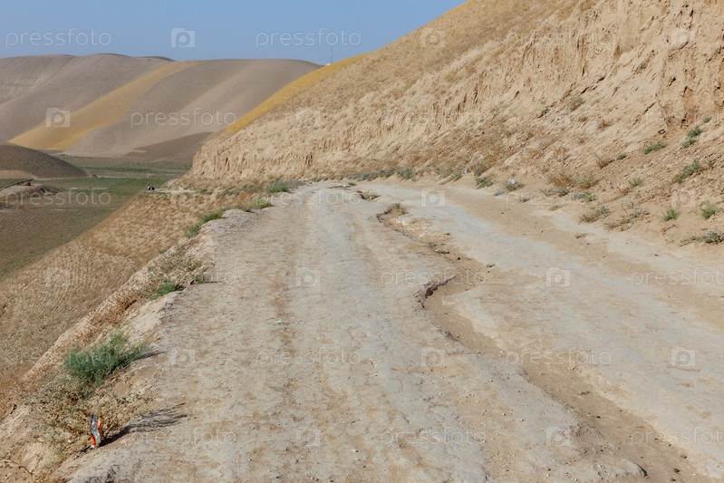 Извилистая горная грунтовая дорога через засушливые холмы в провинции Фариаб Афганистан пейзажный район