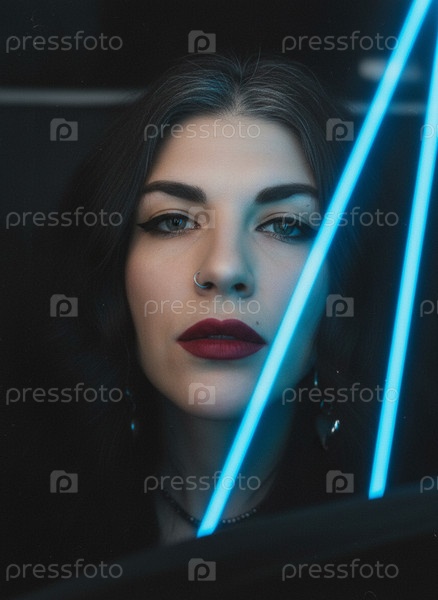 Крупный портрет девушки в неоновом свете