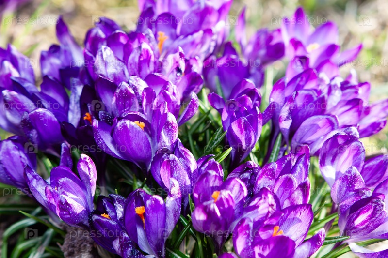 Фиолетовые цветы крокуса крупным планом в весеннем саду