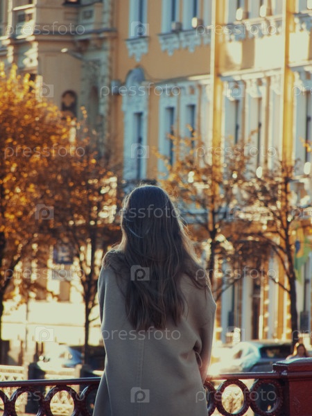 Фотография девушки на мосту. Вид со спины. Санкт-Петербург