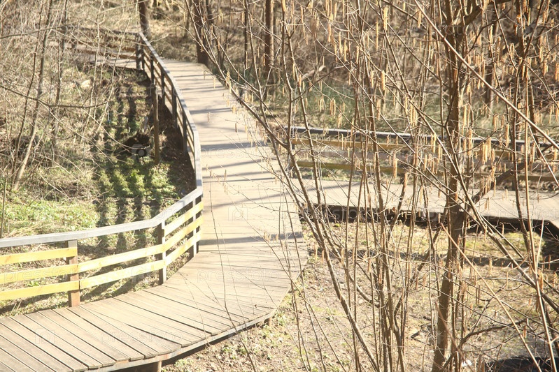Весенний пейзаж с деревьями, растениями и тропинкой