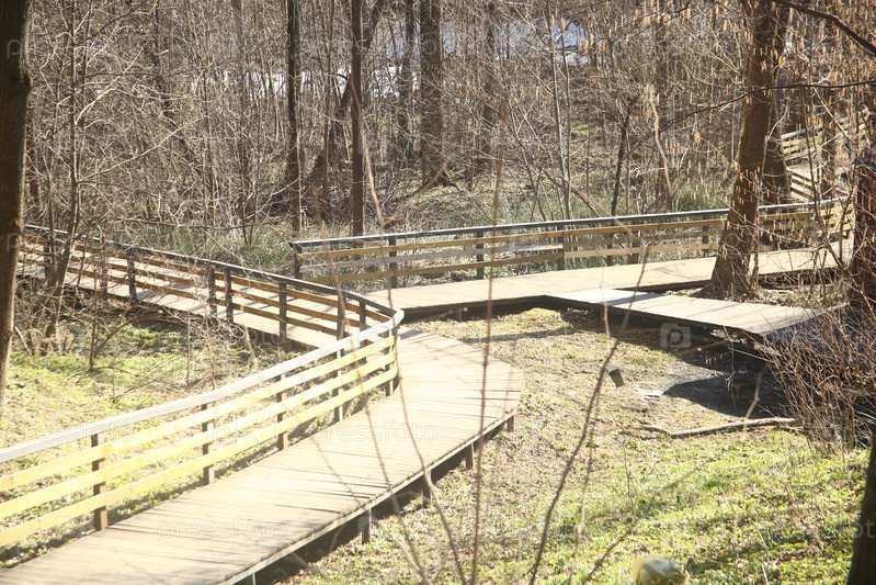 Весенний пейзаж с деревьями, растениями и тропинкой