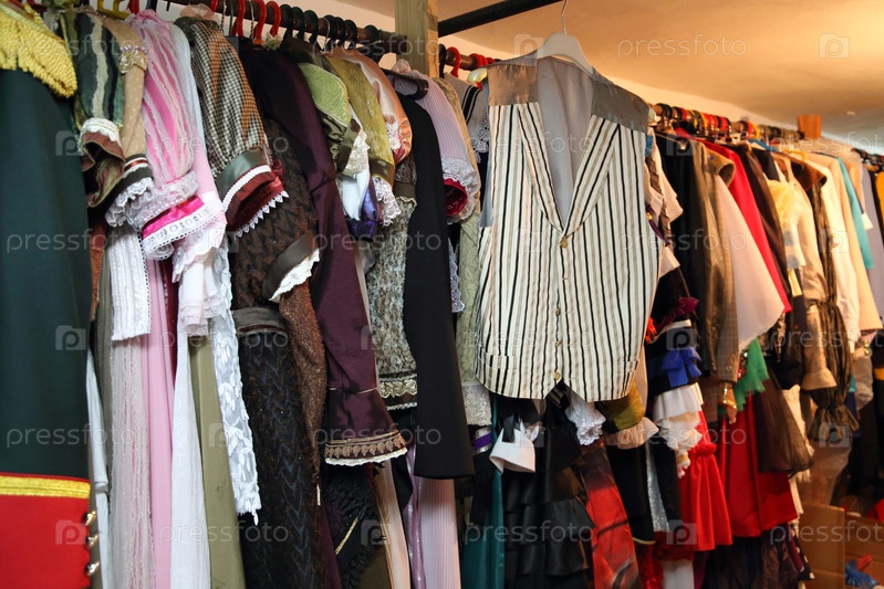 Костюмы в костюмерной театра