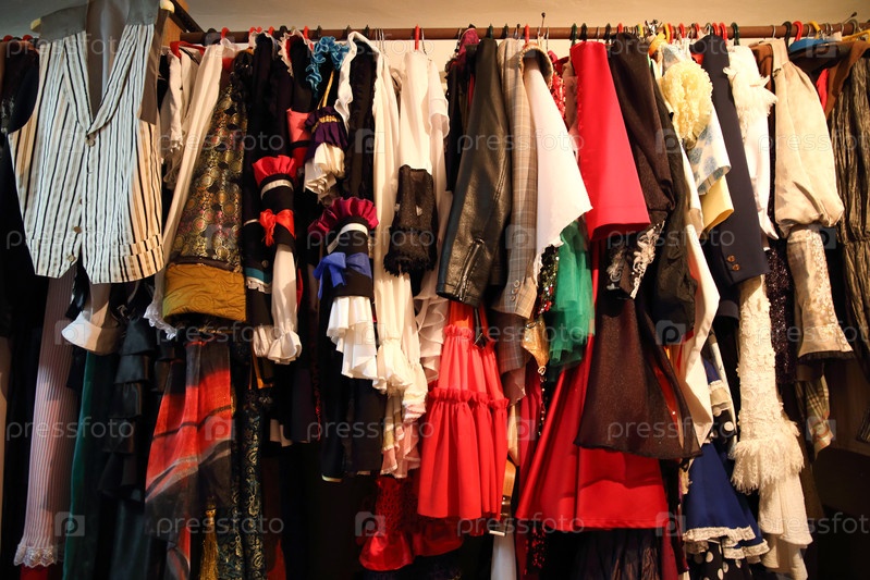 Костюмы для спектаклей висят в костюмерной театра