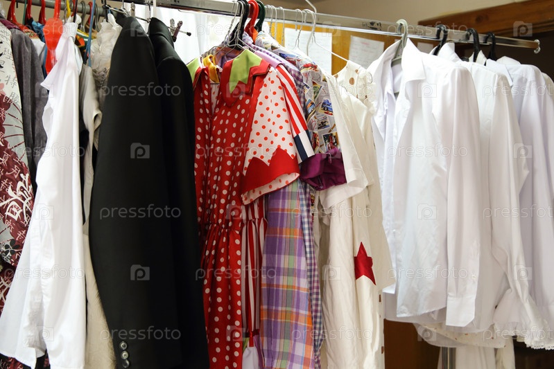 Костюмы в костюмерной театра