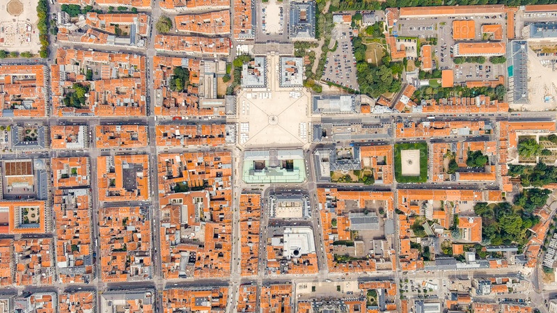 Нэнси, Франция. площадь Станислава. ратуша Нанси. лето, солнечный день, взгляд с воздуха