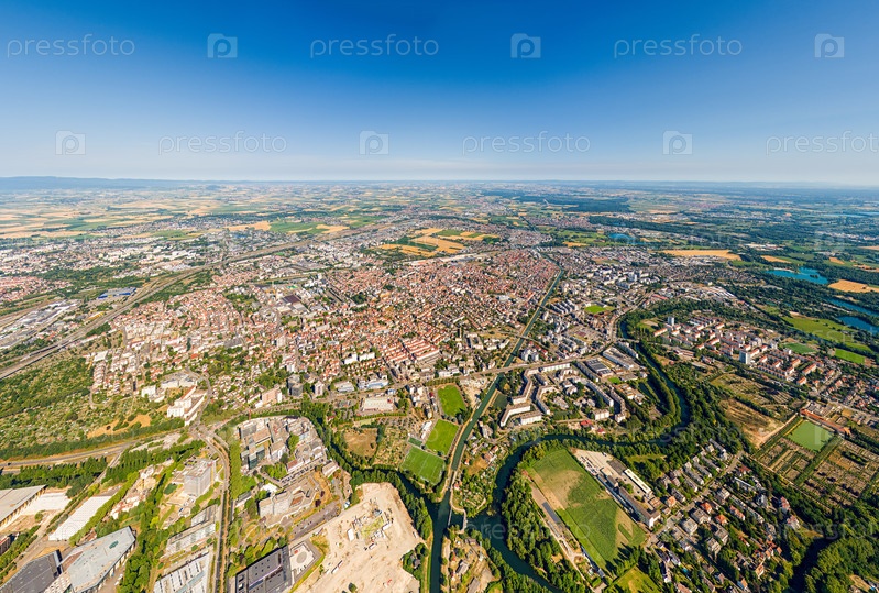 Страсбург, Франция.Панорама города в летний день.Солнечная погода.Вид с воздуха