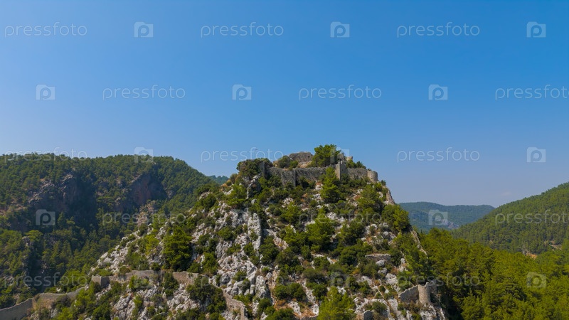 Cakallar, Аланья, Турция.Профессиональные кадры с воздушных дронов исторического места замка Алара для коммерческого использования.Воздушный вид