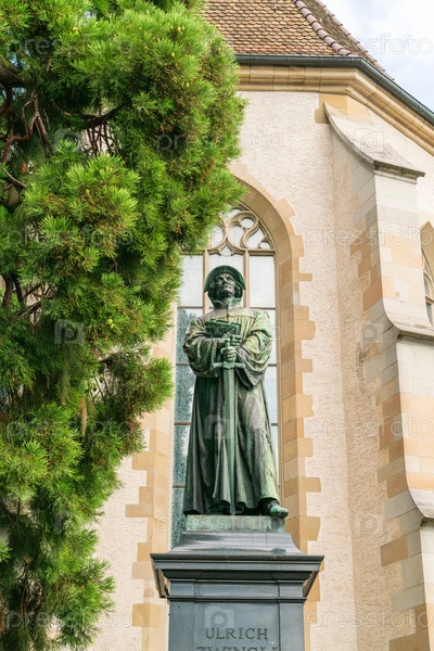 Цюрих, Швейцария. Памятник Ульриху Цвингли. Монумент установлен в 1885 году. Текст на пьедестале гласит: ULRICH ZWINGLI 1 января 1484 - 11 октября 1531