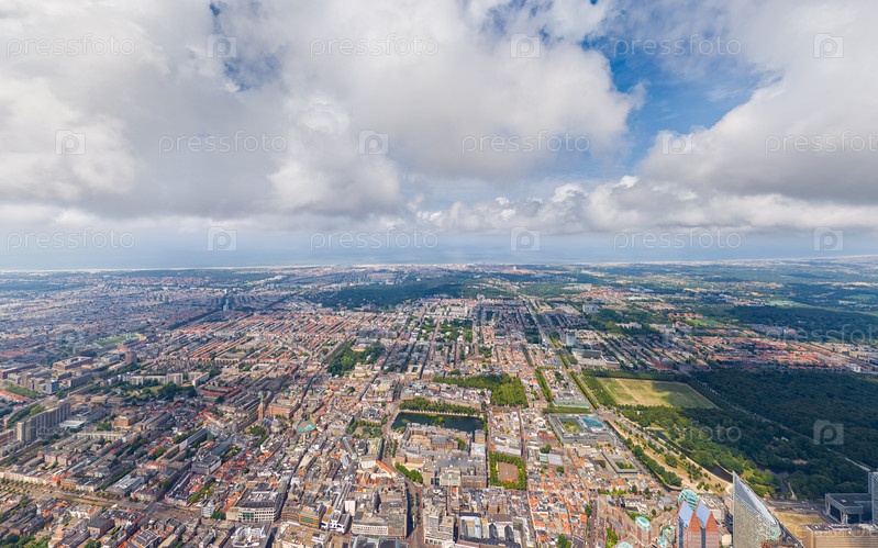 Гаага, Нидерланды.Панорама летнего города в облачной погоде.ГЛАВА ПО СНИМЕ.Вид с воздуха