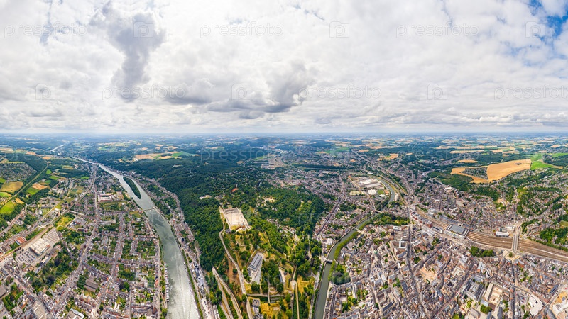 Намур, Бельгия.Панорама города.Летний день, облачная погода.Вид с воздуха