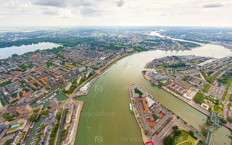 Роттердам, Нидерланды Панорама летнего города в дождливую погоду Облака Вид с воздуха