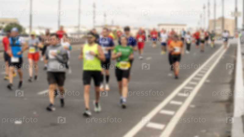 Акционный снимок многочисленных бегунов на городской улице