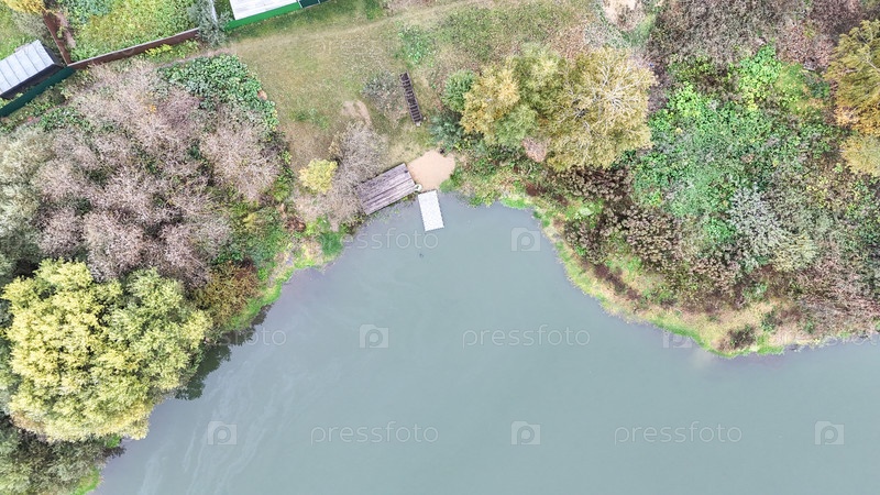 Спокойный пруд с деревянным доком