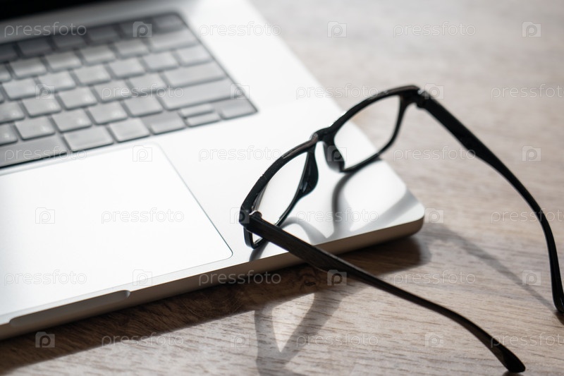 Серебряная клавиатура ноутбука опирается на деревянную поверхность