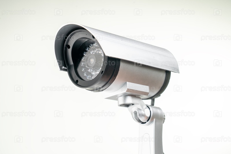 Серебряная камера видеонаблюдения с черным объективом и округлым телом
