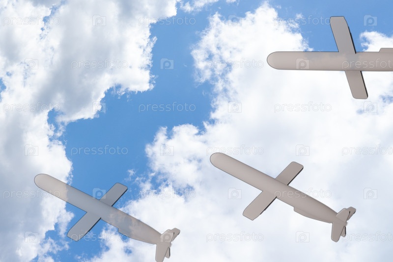 Американские ракеты на фоне флага и голубого неба с облаками