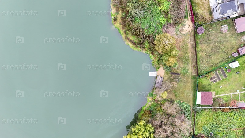 Авиационная перспектива показывает, как безмятежное озеро встречается с пышным пейзажем