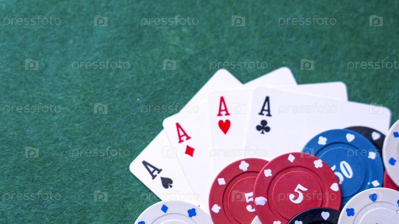 Три туза лежат раздуваемыми на зеленой поверхности
