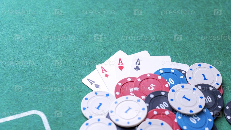 Играть в карты и фишки на зеленой ткани, кубики рядом с ними - это волнение и удача в казино