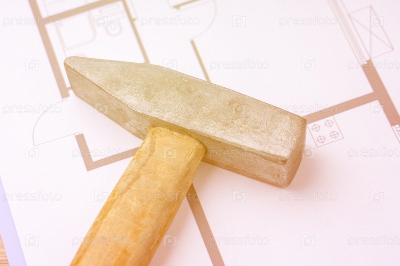 Молот на чертежи нового дома. план дома и молот