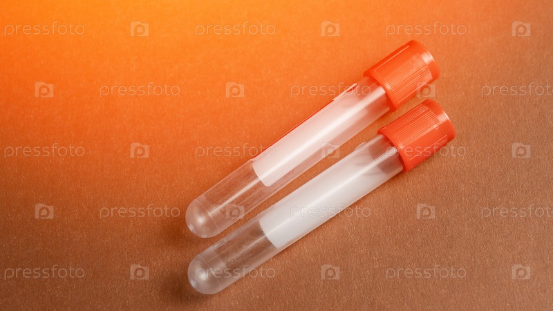 Две прозрачные пробирки лежат на текстурированной коричневой поверхности