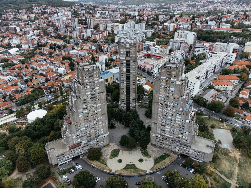 Вид с воздуха жилых башен Rudo и городского пейзажа в Белграде, Сербия. g